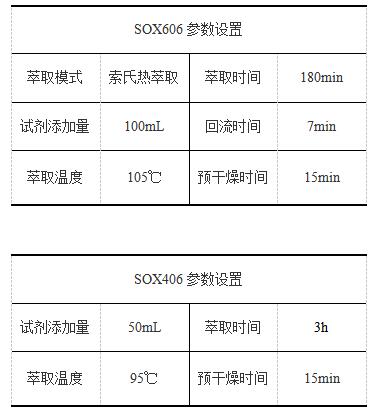 实验中抽提溶剂可以根据实际情况选择无水乙醚、石油醚,实验中仪器温度设置一般高于所用溶剂沸点10-20℃为宜。如选择无水乙醚作为溶剂,应将样品彻底干燥。如选择石油醚作为溶剂,可允许样品中存在微量水分。样品需进行充分研碎或粉碎。颗粒尺寸越小,混合越均匀,样品中脂肪越容易被萃取出来,从而可缩短萃取时间,提高工作效率。无水乙醚、石油醚均存在易燃易爆风险,且会对人体造成伤害,实验过程中应注意保持良好通风,或将仪器放置于通风橱中。