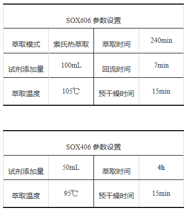 实验中抽提溶剂可以根据实际情况选择无水乙醚、石油醚,实验中仪器温度设置一般高于所用溶剂沸点10-20℃为宜。如选择无水乙醚作为溶剂,应将样品彻底干燥。如选择石油醚作为溶剂,可允许样品中存在微量水分。样品需进行充分研碎或粉碎。颗粒尺寸越小,混合越均匀,样品中脂肪越容易被萃取出来,从而可缩短萃取时间,提高工作效率。无水乙醚、石油醚均存在易燃易爆风险,且会对人体造成伤害,实验过程中应注意保持良好通风,或将仪器放置于通风橱中。
