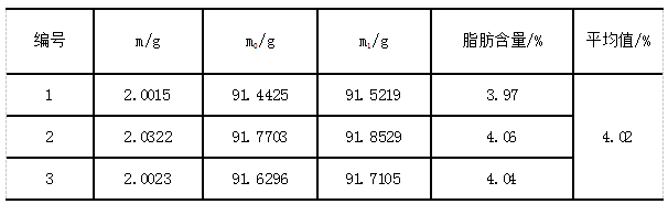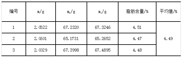 《GB 5009.6-2016食品安全国家标准 食品中脂肪的测定》中对于精密度规定:在重复性条件下获得的两次独立测定结果的绝对差值不得超过算术平均值的10%。实验各样品三次独立测定结果绝对差值均未超过算术平均值的10%,符合标准要求。