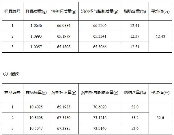 由实验结果可知,肉与肉制品游离脂肪含量较高,萃取时间根据样品质量和脂肪含量增多相应加长。