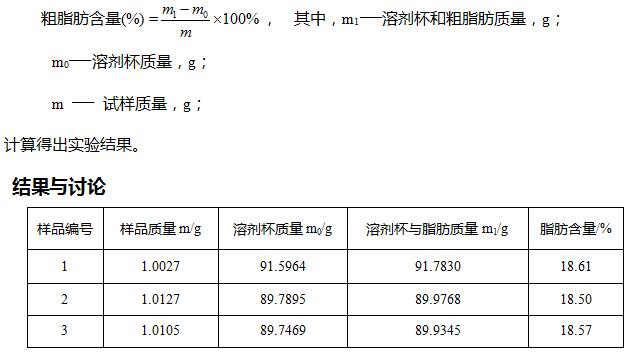 增重法计算粗脂肪含量: