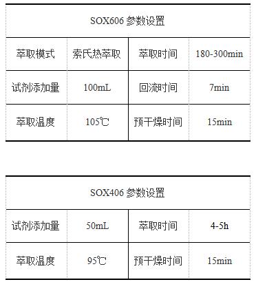 由实验结果可知,油料作物脂肪含量高,萃取时间根据样品质量和脂肪含量增多相应加长;当该种类样品量为1-2g时,建议萃取时间设置大于3h,以便取得更好的测试结果。