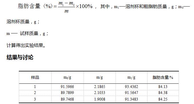 人造黄油是指一些餐桌上用的涂抹油脂或用于起酥的油脂,一般采用氢化或结晶化的植物油做原料。但其含脂量较多,过多摄入,可使人体胆固醇含量增高,增加心血管疾病危险。其中脂肪含量测定原理为:将样品干燥后用有机溶剂回流提取,使试样中的脂肪被溶剂抽提出来,回收溶剂后所得到的残留物,即粗脂肪。