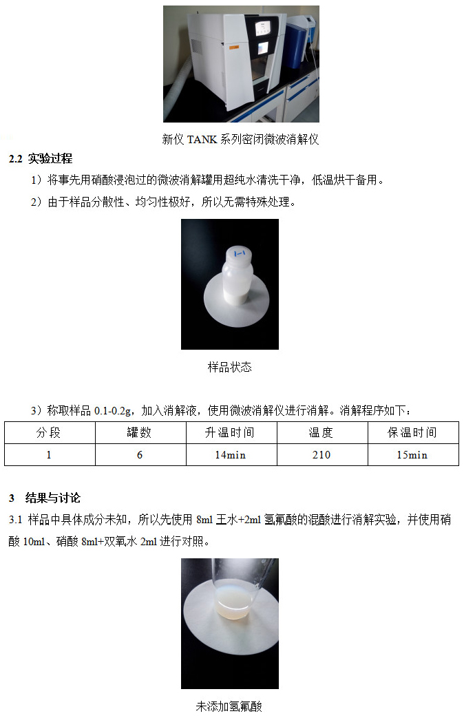 3.2 使用逆王水加氢氟酸的混酸进行消解实验。