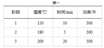 将古钱币样品剪碎(质量大小不一),取质量为0.15521g的样品进行实验,加入6mL的盐酸和2mL硝酸,室温静置30min后,组装消解罐,按照如下(表一)设置参数进行消解: