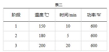 再称取四组古钱币样品,质量分别为0.15407g、0.10028g、0.06990g和0.03376g,加入6mL的盐酸和2mL硝酸,室温静置30min后,组装消解罐(质量最大的作为主控罐),按照如下(表二)设置参数进行消解:
