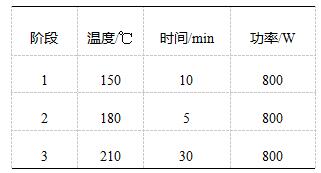 分别加入6mL浓硝酸、2mL浓盐酸和2mL的氢氟酸,同时做试剂空白,室温静置一段时间,待其反应完全后,则组装消解罐,按照如下设置参数进行消解: