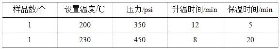 过程最高压力250psi左右,消解后溶液无色澄清透明。