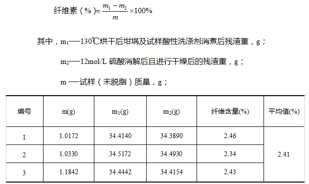 根据Van Soest方法结合海能F800纤维测定仪测定烟草中纤维素的含量原理如下:饲用燕麦经酸性洗涤剂的消煮后,得到残渣成分为纤维素、木质素和硅酸盐;样品再经12mol/L硫酸常温下消解,得到残渣成分为木质素和硅酸盐;两过程残渣重量之差即为纤维素的重量,从而与样品重量相比得出纤维素含量值。