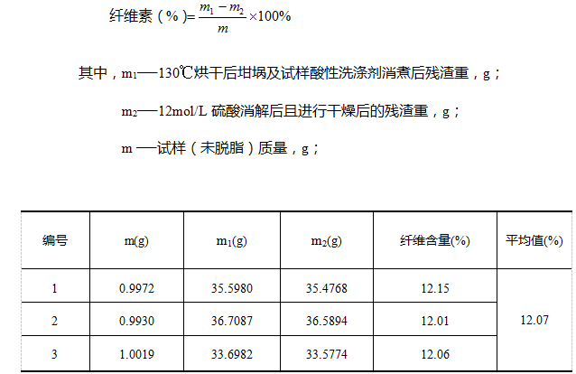 根据Van Soest方法结合海能F800纤维测定仪测定烟草中纤维素的含量原理如下:烟草经酸性洗涤剂的消煮后,得到残渣成分为纤维素、木质素和硅酸盐;样品再经12mol/L硫酸常温下消解,得到残渣成分为木质素和硅酸盐;两过程残渣重量之差即为纤维素的重量,从而与样品重量相比得出纤维素含量值。
