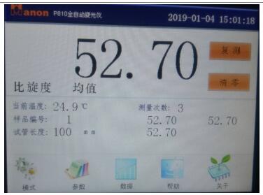 根据实验结果可以看出,P810旋光仪测定葡萄糖的比旋度在52.5°~53°之间,符合要求。