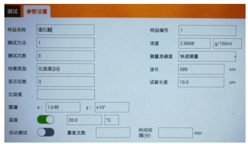 仪器预热,设置合适的参数用,在20℃时,用空白溶液校正后,测试样品的比旋光度,重复测定3次并记录数据。
