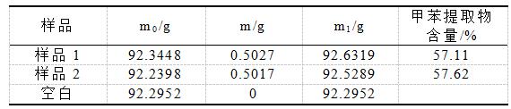 其中,m1──溶剂杯和甲苯提取物质量,g;