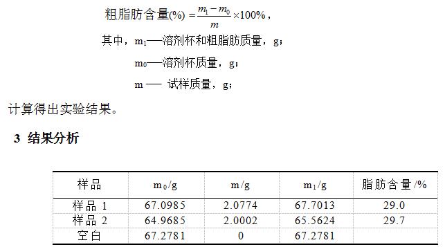 3.萃取:加入抽提溶剂50mL,打开冷凝水,启动脂肪测定仪。设置回流时间3h、萃取温度95℃,进行萃取。预干燥15min。