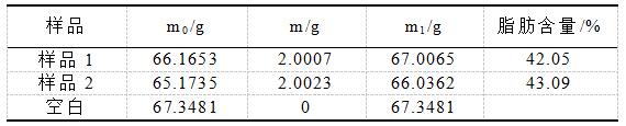 由表格中数据可知,所做的空白样品在实验前与实验后质量未增加,即空白中不含脂肪。