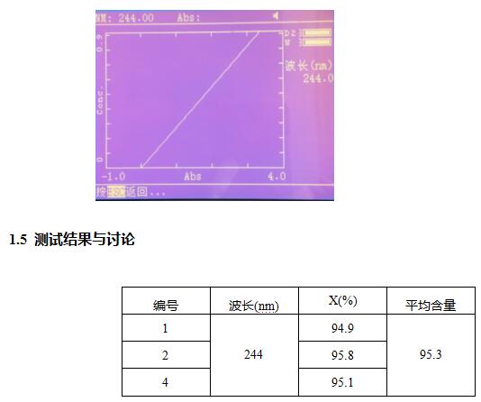 1.4.2样品的测定:称取维生素C片20片,研细,准确称取约0.05g样品,用0.005mol/l的稀硫酸定容至50ml,在244波长出测定其浓度。