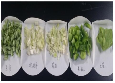 选取有代表性的蔬菜样品,冲洗掉表面泥土,剪成1cm左右见方碎片。