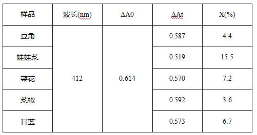 通过实验测得的几种蔬菜中的酶抑制率均<50%,在合格范围内,此方法操作简单,节省了实验成本。