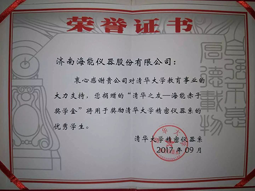 2017年9月,海能仪器再次完成了“清华之友——海能赤子奖学金”的发放。自2013年海能仪器与清华大学签约以来,该项奖学金已进行了多次发放。