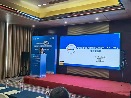 与悟空仪器共同参会的,还有海能技术-G.A.S.事业部,现场展示了FlavourSpec®气相离子迁移谱联用仪,分享了《气相色谱-离子迁移谱联用技术及若干应用》的报告。