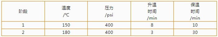 分别加入 6 mL硝酸、2 mL盐酸和3 mL氢氟酸,同时做试剂空白,待全部加完后缓慢摇晃消解罐,保证样品都浸没在酸液里。室温静置10min,待其反应完全后,组装消解罐,按照如下设置参数进行消解: