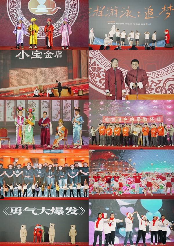 歌舞、小品、相声……《悟空,给你极致体验》《打劫》《花样游泳:追梦》《Bling Bling》《征服太平洋》……各类节目接连上演,各位家人展现工作之外的“十八般武艺”。玩游戏、抽奖、话重逢,现场掌声阵阵、欢呼声声,怎一个热闹了得。