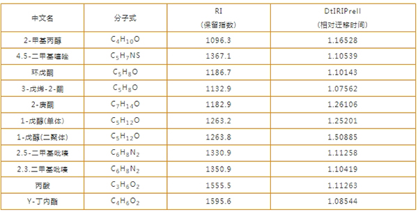 浓香玉米油风味成分的分子式、保留指数以及迁移时间等数据见下表: