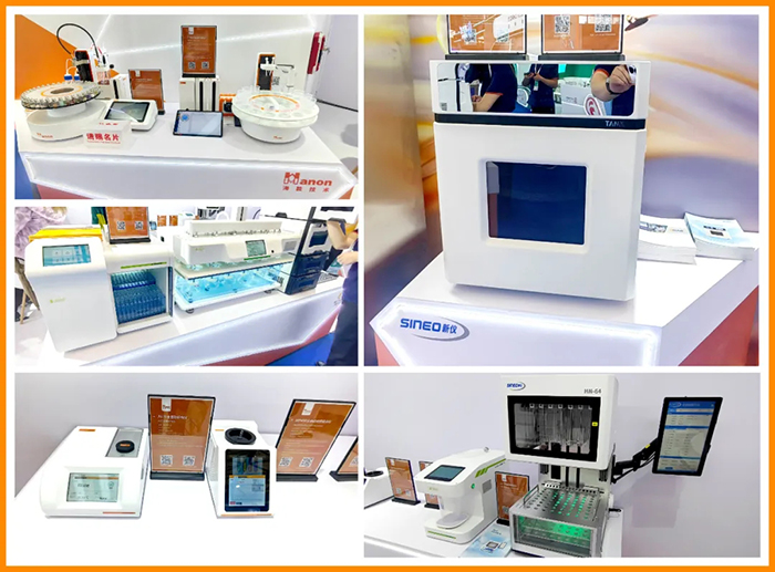 悟空K2025高效液相色谱仪,海森DT12自动溶出取样系统、DC300溶媒脱气仪,新仪TANK微波消解仪,海能T960全自动滴定仪、T930全自动水分滴定仪、MP490全自动视频熔点仪、A670全自动折光仪,白小白BS580D实验室清洗机,新仪HN-64全自动氮吹仪等仪器悉数展出。