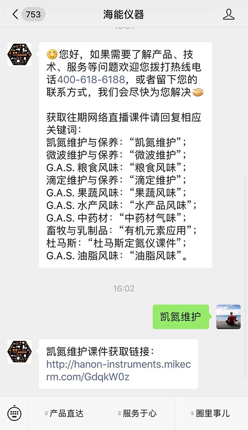关注海能仪器公众号,回复任意内容获取直播关键词清单,再回复相应关键词即可获取您想要的课件下载链接啦~是不是很简单?