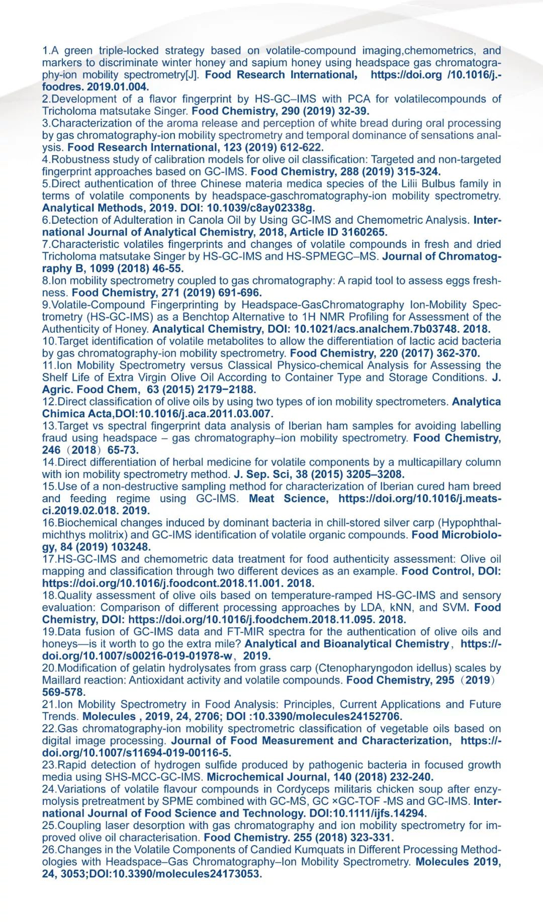 近年来,气相离子迁移谱技术持续为科技工作者提供新的研究方法与灵感,帮助用户解决问题。迄今为止,G.A.S.团队帮助高校用户发表期刊文章近100篇,还未结束的2019年,也已经发表了40篇有余。