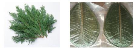 柏叶,植物柏树叶子,主治吐血,鼻出血、痢血;朴叶是一种乡土料理常用到的辅料,烧烤朴叶能散发独特叶香,配以咸鲜的味噌及辛辣的葱,香气袭人,增加食欲。