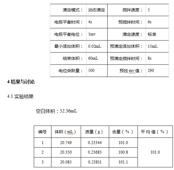 蛋氨酸是动物的一种重要的必须氨基酸。蛋氨酸羟基类似物可在动物体内转化为蛋氨酸并发挥其营养作用。此外,它还可用做反刍动物的过瘤胃蛋白源和仔猪日粮的酸化剂,能抑菌杀菌、减少热应激,并可减少氮的排泄,保护环境。另外蛋氨酸是蛋禽料中的重要氨基酸,可以有效提高产蛋率。因此测定其含量将为饲料配比提供依据。本方采用电位滴定的方法,对比传统颜色判定重点方法,更为准确可靠。