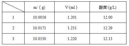 测定方法:精密称取10g(精确至0.001g)已混匀试样,置于滴定杯中,加入80mL新煮沸冷却至室温的蒸馏水混匀,用氢氧化钠标准滴定液(0.1mol/L)电位滴定至pH 8.3,记录消耗的氢氧化钠体积。并将结果以空白试验进行矫正。