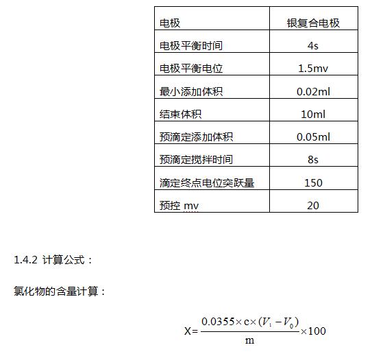 用电位滴定法测定氯化物的含量,操作简单,重复性良好,符合国标的要求。