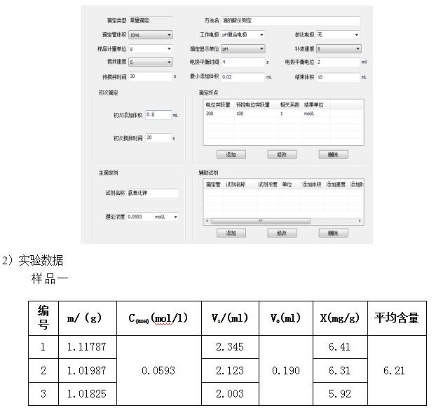测定方法:准确称取1g-1.5g左右的油脂(若为固体先将其融化),置于滴定杯中,加入异丙醇-乙醚混合溶液60ml溶解,搅拌均匀,用氢氧化钾标准滴定液(0.1mol/l),以pH非水电极为工作电极,在T960上进行滴定至终点。