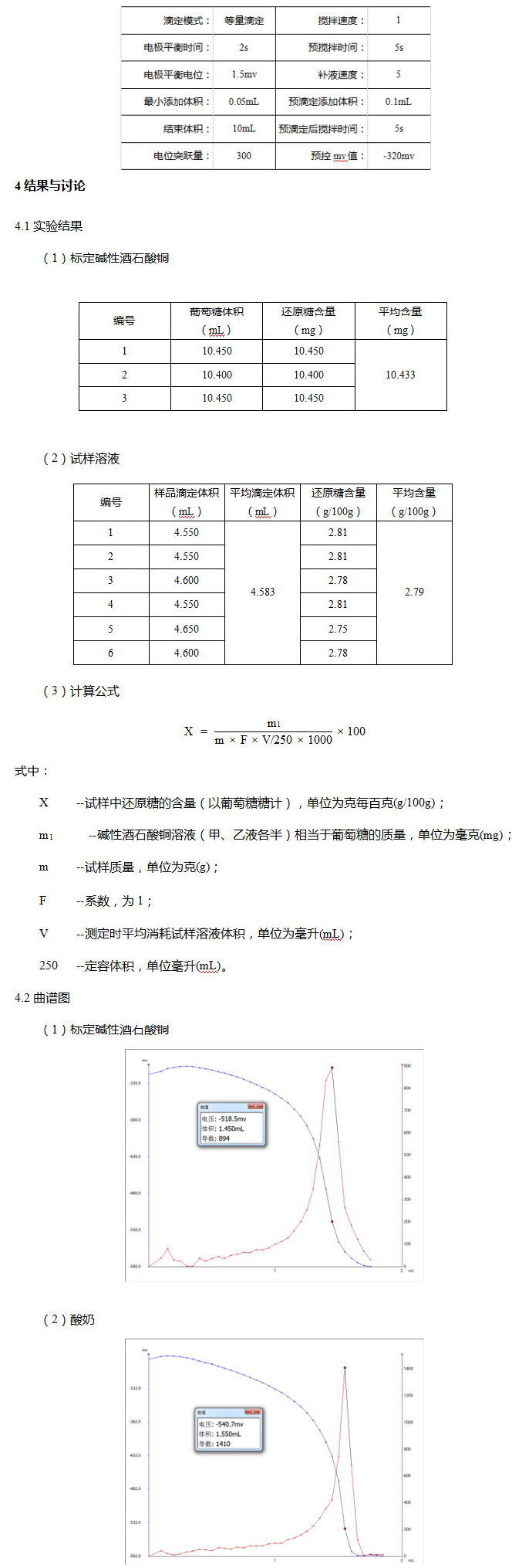 电位滴定法检测酸奶中的还原糖含量