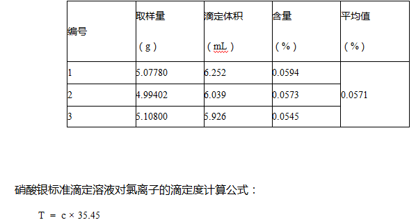 X --氯离子的含量,%;
