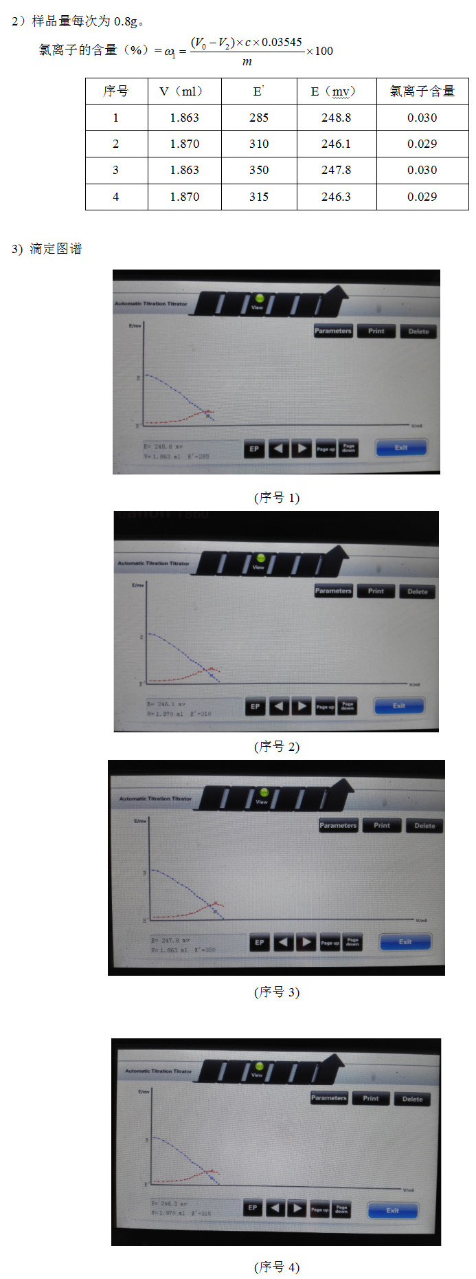 样品中氯离子含量很低,直接滴定不易滴定,测试平行性较好。