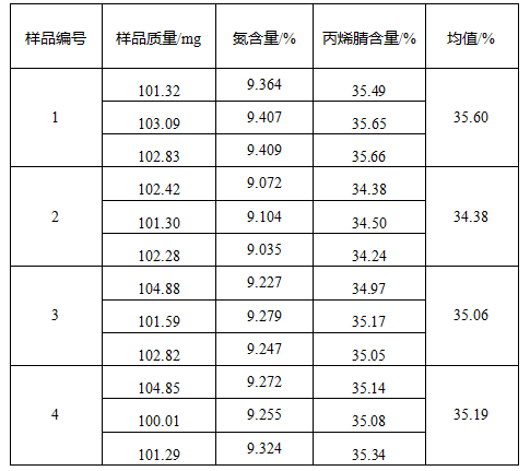 实验采用杜马斯燃烧法使丁腈橡胶在高纯氧气中燃烧释放出氮,参照《ISO 24698-1 丁腈橡胶中丙烯腈含量的测定 第一部分 燃烧分析法》方法,使用杜马斯分析仪定量测定。