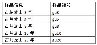样品信息:不同年份的古越龙山黄酒,分别为3年、5年、8年、10年和20年;