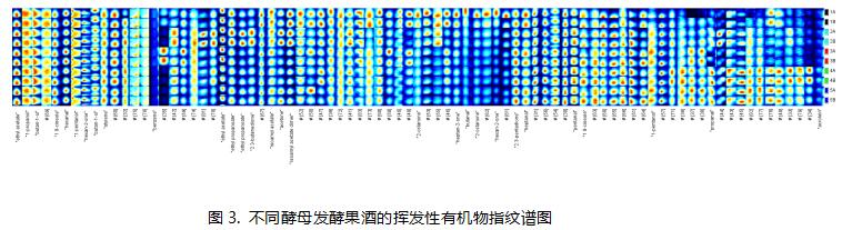 使用G.A.S.公司生产的FlavourSpec®风味分析仪,仪器无需真空且无需样品前处理,经顶空进样后可快速检测不同酵母发酵样品中的挥发性有机物,经过软件分析,可得到以下信息: