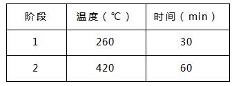 利用石墨消解炉进行消解,将消化管放在石墨炉上,盖上排气罩,连接废气吸收系统,设定消解温度参数如下表:
