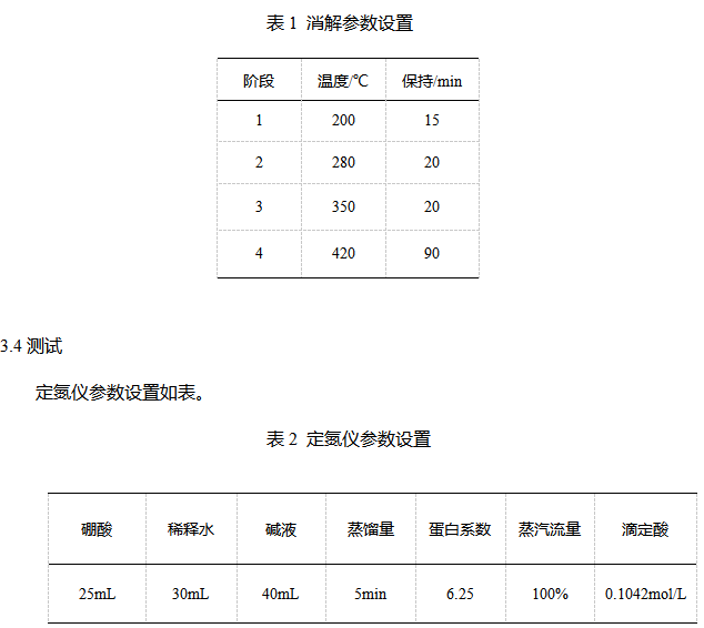 肉类,是动物的皮下组织及肌肉,可以食用。其富含大量的蛋白质和脂肪,以及卡路里,其属于酸性食物。肉类含蛋白质丰富,一般在10-20%之间,瘦肉比肥肉含蛋白质多。因其含有较多脂肪,在测定过程中经常会出现重复性差的情况。因此参照国标《GB 5009.5-2016食品安全国家标准 食品中蛋白质的测定》及《GB/T 9695.11-2008肉与肉制品 氮含量测定》,使用猪后腿肉进行测试。并对实验条件进行了摸索探究,总结出了用来测试肉类中蛋白质的合适方法。