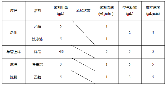 称取样品5g于50mL离心管中,加乙腈8mL,涡动1min,4500r/min离心10min,取上清液。残渣中加乙腈8mL,重复提取一次,合并两次上清液,加水20mL、三乙胺50μL,混匀,备用。