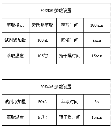 实验中抽提溶剂可以根据实际情况选择无水乙醚、石油醚,实验中仪器温度设置一般高于所用溶剂沸点10-20℃为宜。如选择无水乙醚作为溶剂,应将样品彻底干燥。如选择石油醚作为溶剂,可允许样品中存在微量水分。样品需进行充分研碎或粉碎。颗粒尺寸越小,混合越均匀,样品中脂肪越容易被萃取出来,从而可缩短萃取时间,提高工作效率。无水乙醚、石油醚均存在易燃易爆风险,且会对人体造成伤害,实验过程中应注意保持良好通风,或将仪器放置于通风橱中。