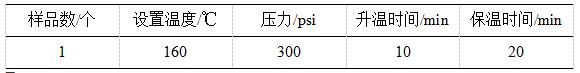 取样量:10mL,消解用酸:5mL浓硝酸混匀后,组装完成进行消解: