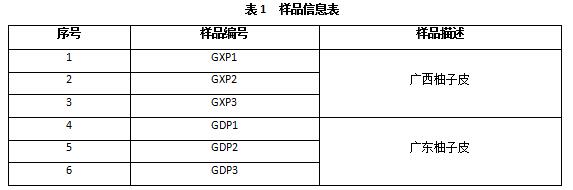 每个地区的柚子各取3个样品,每个样品做2个平行样。