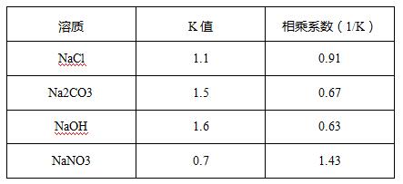 其中,系数K,也就是直线的斜率大小决定溶质的种类。把这介质的浓度与其折光率的关系做在图上,可得到一条直线。由于关系简单,在生产现场用折光仪测定单一溶质溶液的浓度非常方便。比如测定氯碱工业中氯化钠的浓度,上表中的相乘系数是K值的倒数,即1/K,将公式变为C=1/k*N,可用于从折光仪读数计算溶液的浓度。将测得的折光仪读数N乘上该溶质的相乘系数1/K,即得到所测溶液的浓度。