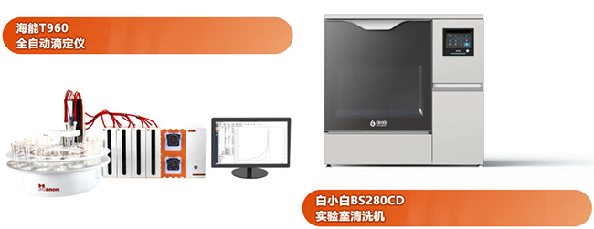 本次展出的海能T960全自动滴定仪可用于核电冷却循环液中的硼含量以及发电机的绝缘油的总酸测定。白小白BS280CD实验室清洗机,用于变压器油和绝缘液的检测过程中的计量器具的清洗和干燥等。