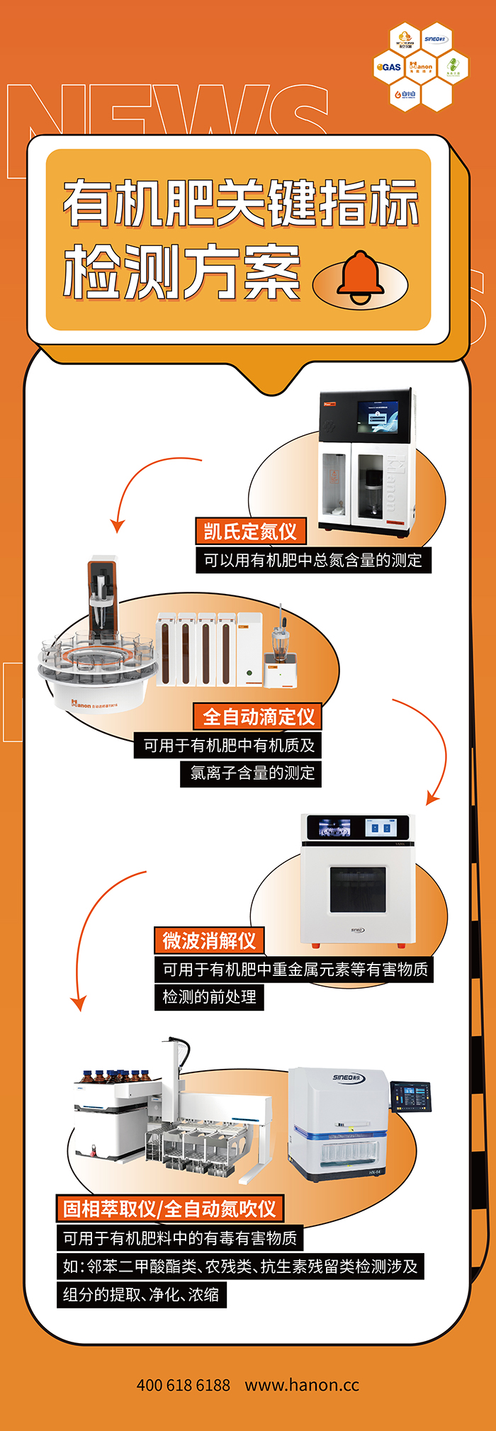 海能旗下产品微波消解仪、凯氏定氮仪、全自动滴定仪、固相萃取仪、全自动氮吹仪等可提供有机肥、污泥、固废等检验检测的仪器和方法支持,为维护生态和粮食安全贡献己力。